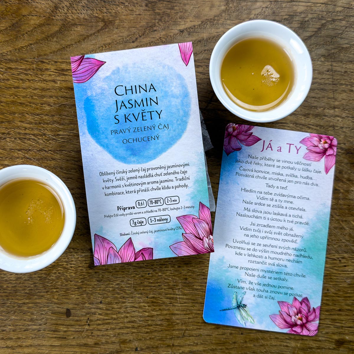 Oblíbený čínský zelený čaj provoněný jasmínovými květy. Svěží, jemně nasládlá chuť zeleného čaje v harmonii s květinovým aroma jasmínu. Tradiční kombinace, která přináší chvíle klidu a pohody.